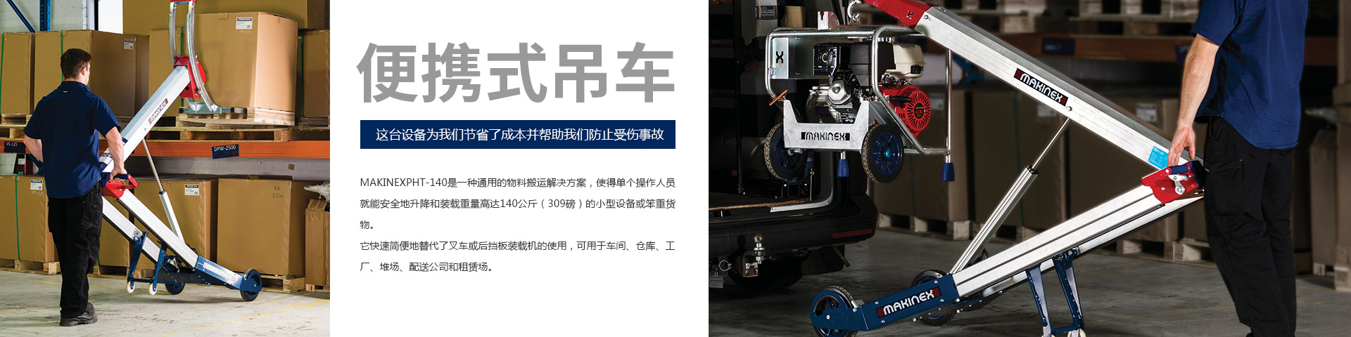 Makinex便攜式吊車是一種通用的物料搬運解決方案,使得單個操作人員就能安全地升降和裝載重量高達140公斤(309磅)…